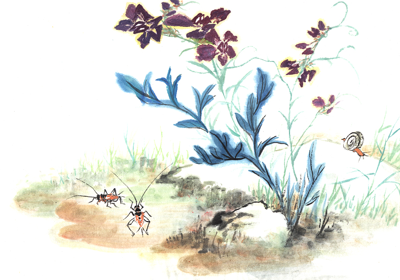 蟋蟀逃离晒得发烫的田地
